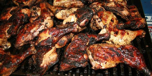 Juicy jerk chicken grilled over authentic Jamaican pimento wood.